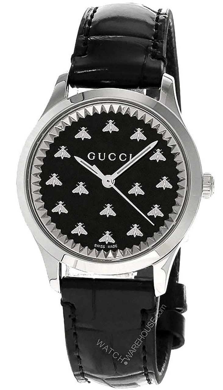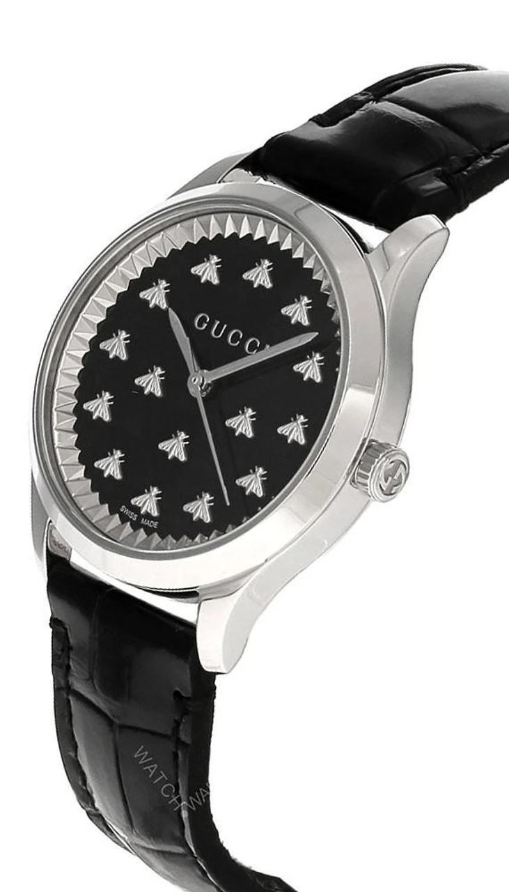 GUCCI G-Timeless Quartz 32MM Black Dial Leather Unisex Watch YA1265055