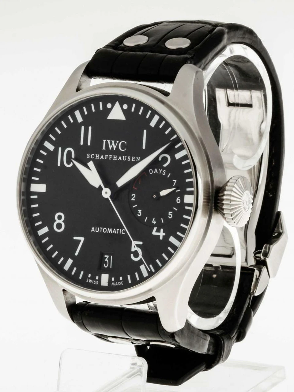 Round case Black dial Arabic Numeral Markers IWC logo |
