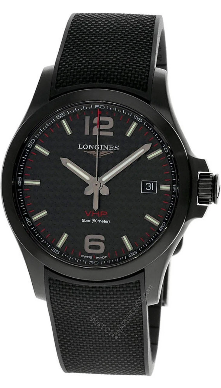 LONGINES Conquest  V.H.P. 43MM Black PVD Rubber Men’s Watch L3.726.2.66.9