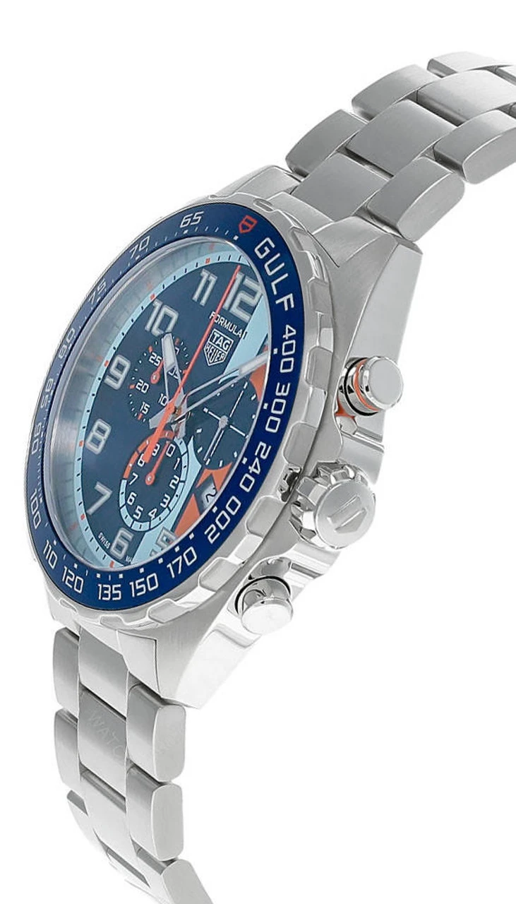 TAG HEUER Formula 1 X Gulf Quartz 43MM CHRONO SS Men’s Watch CAZ101AT.BA0842